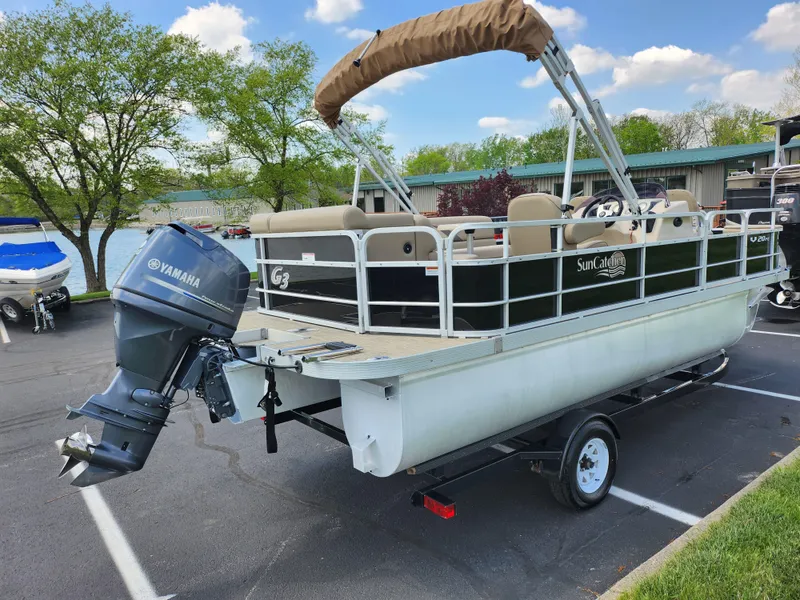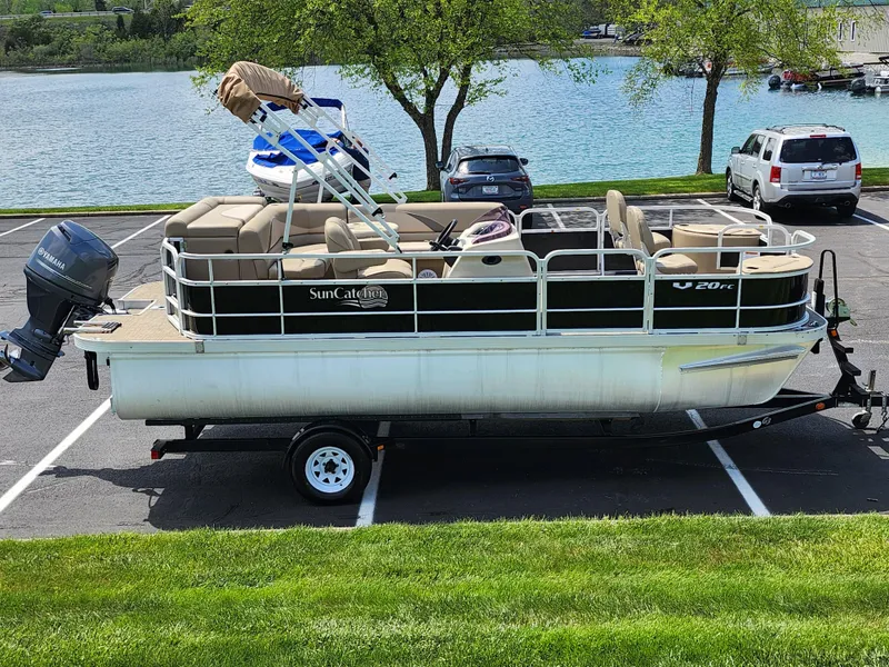 2016 SunCatcher V20 F/C comes with: 90 h.p. Yamaha with Only 140 Hours, Cocktail table, Large swim Deck w/ ladder, front livewells, Kicker Stereo/bt, Trailer, and more.