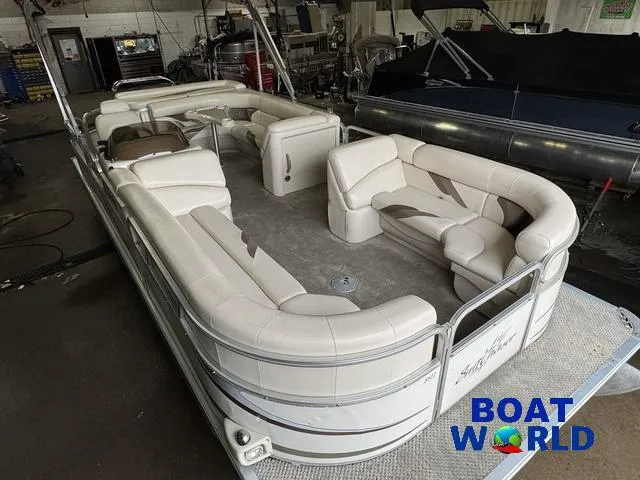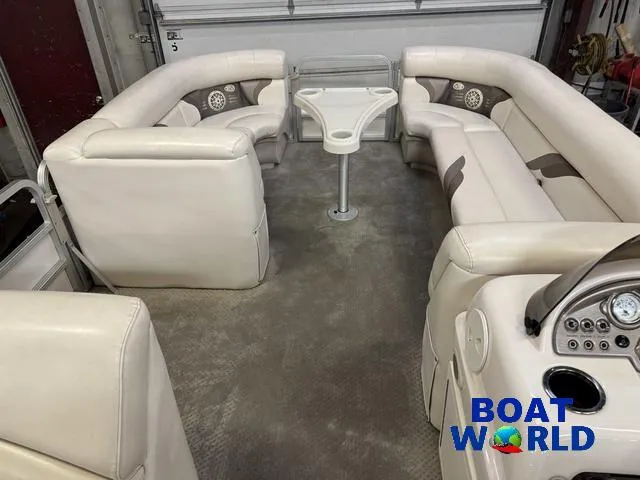 2008 Sunchaser 8522, 2008 SunChaser 8522 Pontoon with 50HP Mercury Outboard. This cruise model pontoon features 2 couches in front with an L-shaped couch in the middle followed by a sun deck at the rear. The captain's chair is a high back seat with swivel and slide functions. The helm features Speedometer, Tachometer, Fuel and Volt gauge. There is a Pyle Bluetooth audio stereo system with additional USB, Sd card and auxiliary inputs. There is a water-tight storage pod on the side of the helm for any items that you don't want to get wet. This unit has a built in ski/tow bar at the back along with a fold down swim ladder.
