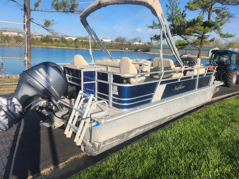 2018 SunChaser Geneva 22 Fishn' Cruise comes with: 115 h.p. Yamaha with 263 Hours, Swim Deck w/ Ladder, Under-Skin, Rod Holders, 2 front and 2 rear fishing chairs, front/rear livewells, Custom Cover, Bimini Top, Cocktail Table,and more. This unit DOES NOT come with a trailer. We do sell new trailers if needed.