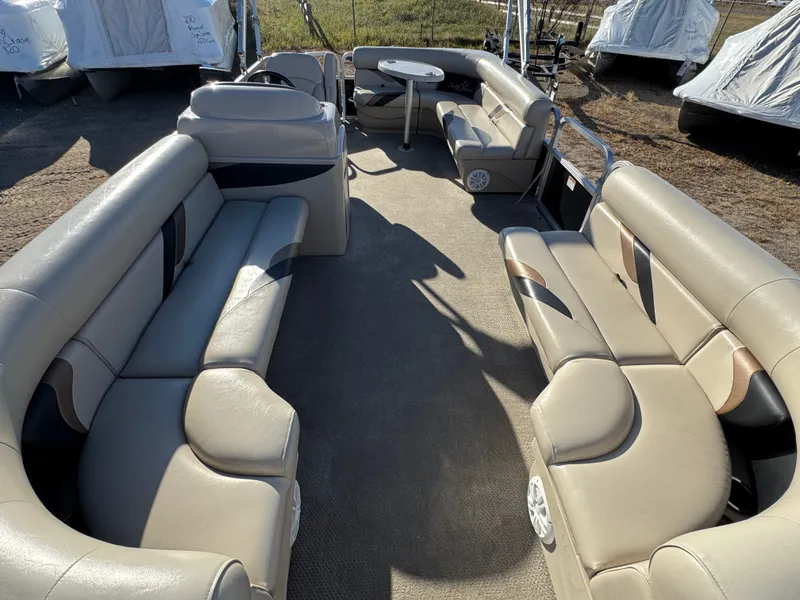2012 SunChaser Oasis 820 Pontoon with 50HP Yamaha Fourstroke EFI Outboard. This cruise model pontoon features 2 couches up front along with an L-shaped couch amidships for great seating options. This pontoon has a swim platform on the bow and stern with a fold down swim ladder on the stern and there is a removable swim ladder that can be placed at the port side entry gate. The captain's chair is a low back sport seat with swivel, slide and recline functions as well as fold up arm rests. The helm features a Tachometer for instrumentation. There is a Lowrance Mark-5X GPS depth/fish finder mounted on the helm. There is a Boss Bluetooth audio stereo system with additional USB and auxiliary inputs. There is a table mounted at the L-shaped couch which can be removed and stowed. This Pontoon is rated for 10 people Mooring Cover Is Included Warranty Is Included In Sale Trailer Not Included But Available For Use Or Purchase $15,995 Visit Us @ www.boatworldmn.com or Call (763)434-9655 Boat World 21155 Highway 65 NE East Bethel, MN 55011 For More Used And New Pontoons Come on out and see what we have in stock!
