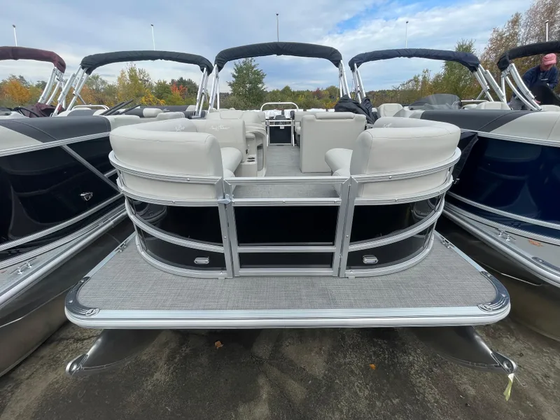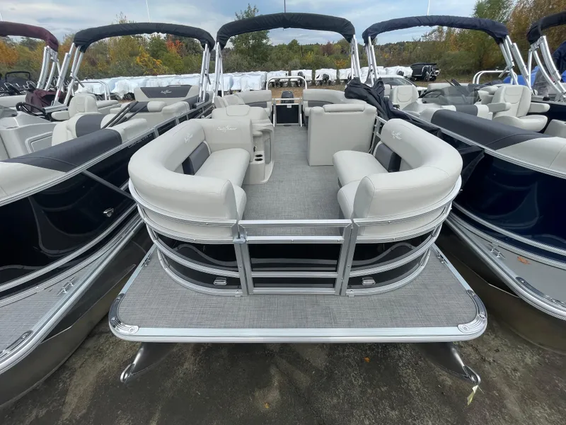 The SunChaser Vista 20 LR pontoon offers a winning combination of comfort and versatility for your next aquatic adventure. Standard features ensure a relaxing and enjoyable day for everyone on board. A sturdy 5-step retractable aluminum ladder makes entering and exiting the pontoon effortless. The interior boasts a comfortable layout with bench seating providing ample space for your crew to relax and socialize. But the true stars of the show are the two chaise lounges, perfect for reclining and soaking up the sun in style. For the captain, a low-back captain's seat offers a touch of luxury while maintaining excellent visibility for navigating the pontoon with ease. This feature-packed pontoon caters to both relaxation and lounging, making it ideal for creating unforgettable memories on the water, whether you're cruising with family or friends.