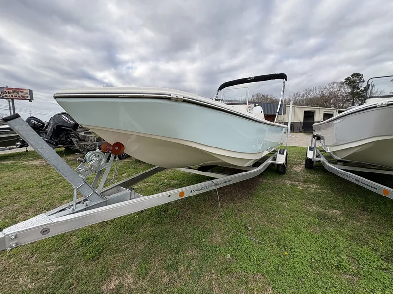 Sundance DX22 skiff with the following options:Suzuki DF140BTXZW4 motorTwo tone color white and ice blueWhite upholsteryWhite powder coat accentsSunpad cushion for the front deckBimini top w/ boot and stainless hardwareSingle power panel battery switch