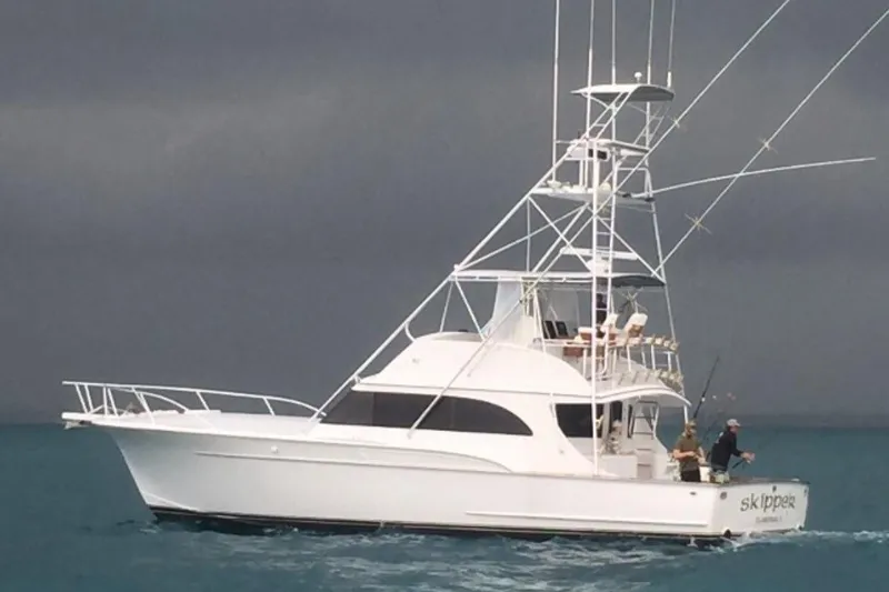 LOW BIDDER X is cold molded constructed with multiple alternating layers of Okume marine plywood and ¾ ounce fiberglass matting between the marine grade plywood. The entire hull has 1” foam/Mylar insulation. The forward deck has 2 ½” insulation. The complete exterior was repainted around 2007 and deckhouse windows were re-bedded. In around 2019 the boat was partially painted again and the deckhouse brow is process of getting painted in 2025. Built by one of the legendary Carolina builders in Wanchese, NC. Only four owners since new.
