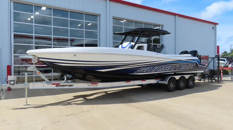 2017 Sunsation 32CCX powered by Twin Mercury 350 Verado with only 374 hours, Mercury Vessel view, Trim tabs, (2) Garmin GPS, Sea deck flooring, Fusion stereo, Fusion remote bow controller, JL Audio speakers, Windless anchor, Porta potty, Swim ladder, Mercury digital controls, Rod holders, No trailer