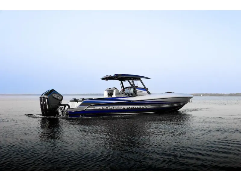 Twin 400 HP Mercury Racing engines launch you past 100 km/h, with a bold look and all the space you need to get the party going.