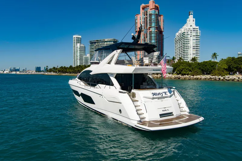 The 2024 Sunseeker 76, Misty K offers a refined balance of space, performance, and intelligent design. Powered by twin MAN V12 1550 engines, she provides efficient cruising and shows exceptionally low engine hours. Presented in excellent, near-new condition, she is ready for immediate enjoyment.