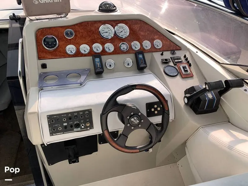 Powered by twin Mercruiser 454 V8 engines, this boat can get you to your favorite spot at awesome speeds of up to 52 mph.