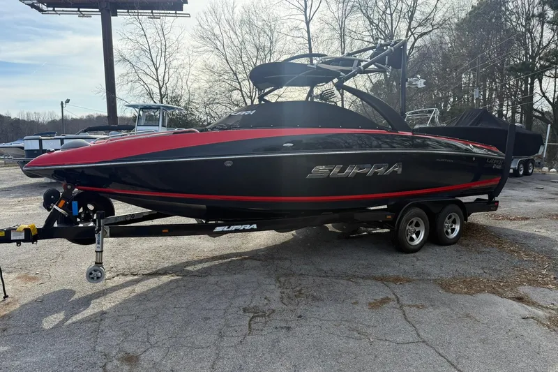 The completely restyled 242 is the boat of choice for Supra's team of pro riders, so you know this ride has plenty to keep even the most demanding wakeboarders happy. For starters, the 242 boasts the most ballast of any Supra - a whopping 1,700 pounds. All that water weight combines with Supra's SmartPlate to sculpt the pro-level wakes that make the 242 the official towboat of the WWW Wakeboard World Championships. This incredibly smooth and sleek ride begins with the unique Supra Hull - the deepest hull in it's class and part of the one and only Supra Ride System. The exclusive Supra VISION dash system allows for instant command of everything, from standard Zero Off GPS cruise control and Gravity III ballast to the stereo system and engine diagnostics. The 242 is a straight line tracking, massive wake-making machine.