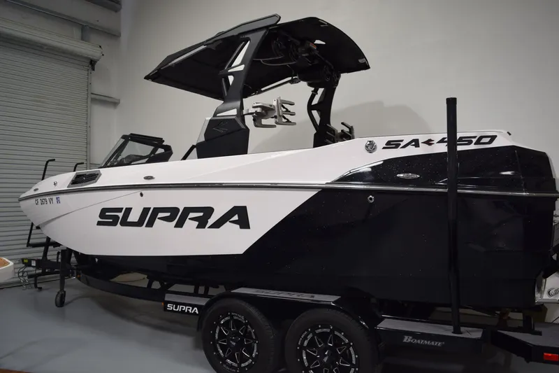 Introducing the 2023 Supra SA, a stunning Ski/Wakeboard boat that combines performance and style. With an impressive overall length of 24.58 feet, this vessel is designed for thrilling water adventures. The modified Vee hull, crafted from durable fiberglass, ensures stability and agility on the water, making it perfect for wakeboarding and skiing. Powered by a robust 450 hp Indmar Raptor inboard engine, the Supra SA delivers exhilarating speed and responsiveness, ensuring an unforgettable experience for up to 16 passengers. The thoughtful design and spacious layout provide ample room for friends and family to enjoy a day on the water. This used model is not just about performance; it also features modern equipment that enhances your boating experience. Whether you're carving through waves or relaxing on the water, the Supra SA is a fantastic choice for those seeking adventure and luxury in one sleek package.