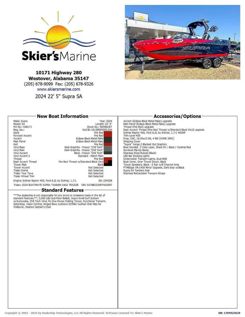 2024 Supra SA, A 2024 Supra boat, renowned for premium craftsmanship, delivers the ultimate wake and surf experience. Its precise hull technology, the Swell Surf System, creates massive, customizable waves, perfect for riders of all skill levels. The interior boasts luxurious comfort and cutting-edge features, from the Chill Tech Vinyl to the Supra Command Center. Backed by a robust warranty and a strong resale value, a Supra is a smart investment in endless summer fun and a premier ownership experience