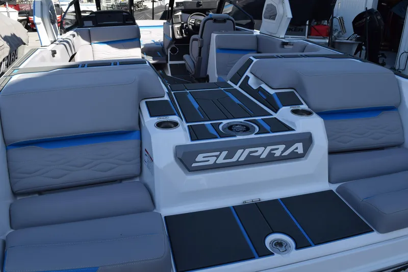 Introducing the stunning 2026 Supra SA, a remarkable Ski/Wakeboard boat that combines performance and style. With an overall length of 24.58 feet, this new vessel boasts a sleek fiberglass hull designed in a modified Vee shape, ensuring excellent maneuverability and stability on the water. Powered by dual 400 hp Indmar Raptor engines, the Supra SA delivers exhilarating speed and responsiveness, making it perfect for thrilling wakeboarding sessions or leisurely cruises. Its impressive seating capacity of 15 allows for unforgettable outings with family and friends, ensuring everyone can enjoy the adventure together. This boat is equipped with modern features that enhance the overall experience, making it an ideal choice for water sports enthusiasts. The Supra SA is not just a boat; it's a gateway to endless fun and excitement on the water, ready to create lasting memories for years to come.