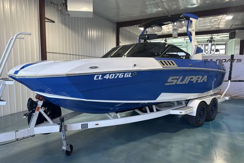 Introducing the 2019 Supra SA 550, a stunning Ski/Wakeboard boat that perfectly combines performance and style. With an overall length of 22.5 feet, this vessel is designed for thrilling water adventures. The deep vee hull, crafted from durable fiberglass, ensures a smooth ride, cutting through waves with ease. Powered by a robust INDMAR RAPTOR 6.2L 575 engine, this boat delivers an impressive 550 horsepower, reaching cruising speeds of 25 mph and a maximum hull speed of 38 mph. With 525 hours of use, it promises reliable performance for your outings. The SA 550 accommodates up to 16 passengers, making it ideal for gatherings with family and friends. Its thoughtful design and advanced features ensure a comfortable and exhilarating experience on the water. Whether you're skiing or wakeboarding, this boat is ready to elevate your aquatic adventures.