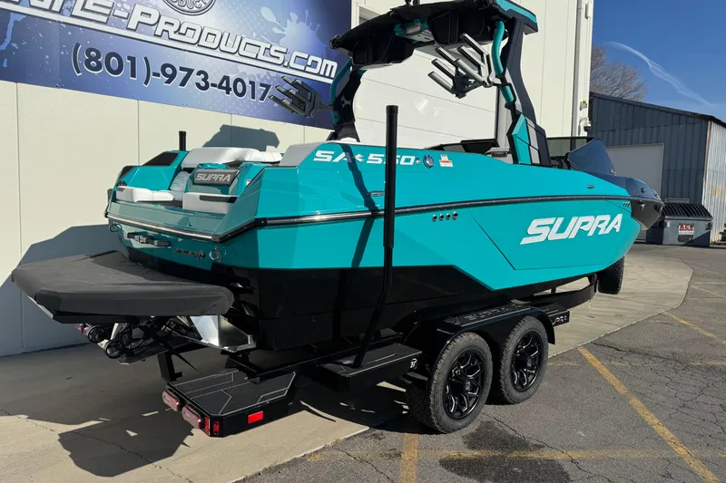 Brand new 2026 SA 550 with Supercharged Raptor 575 engine. This boat comes with a power bimini, stern thrusters, new built-in transom seats, Swellsurf system, clamping board racks, chill tech vinyl, Boatmate trailer.