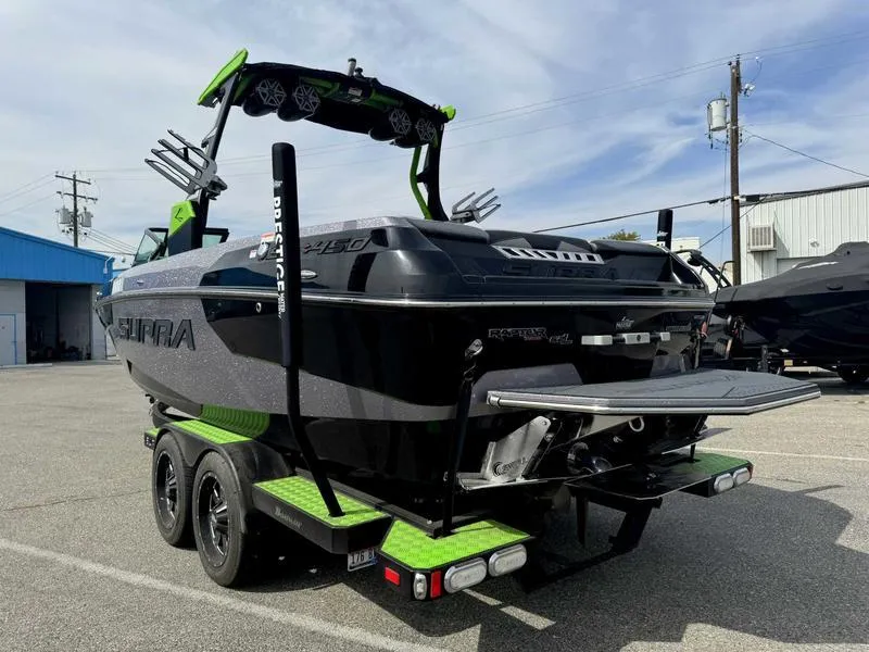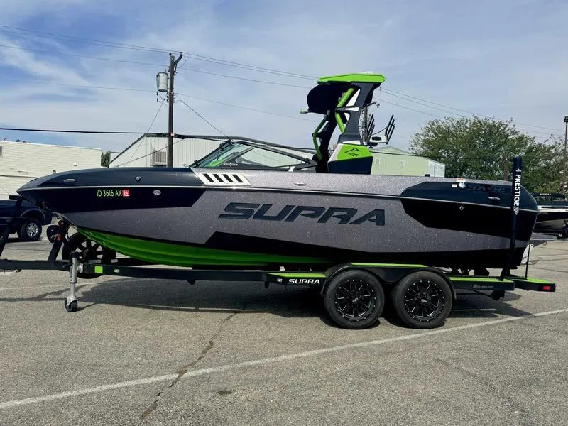 - Upgraded ELITE SHIELD Tandem Axle Trailer w/ Swing Tongue, Illuminated Laser Cut Supra Logo, Bow Step Ladder, Custom 18 Wheels, Dual Disk Brakes, Front and Rear Steps, LED Lights, Spare Tige w/ Carrier, Prop Guard Rollers, etc.