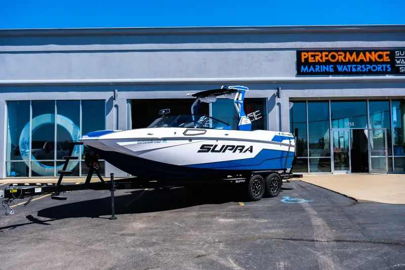 2023 SUPRA SL450 PKG. ONLY 146HRS LIKE BRAND NEW CONDITION. COLORS ARE OXFORD BLUE & WHITE & BLACK. THIS SL450 IS COMPLETLY READY TO GO FOR THE SEASON ALL SERVICE IS UP TO DATE. THIS SL450 HAS A LOT OF PREMIUM OPTIONS: UPGRADED 450 HP RAPTOR ENGINE, SURF EXHAUST, SUNDECK FLIP UP BACKS, JL AUDIO 2 PAIR TOWER SPEAKERS W/AMPS. FULL TOWER DOWN COVER, HEATER, PTMEDGE MIRROR UPGRADE, SWIM PLATFORM COVER, PHENDER PRO, PLUS ALL STD FACTORY OPTIONS INCLUDED.