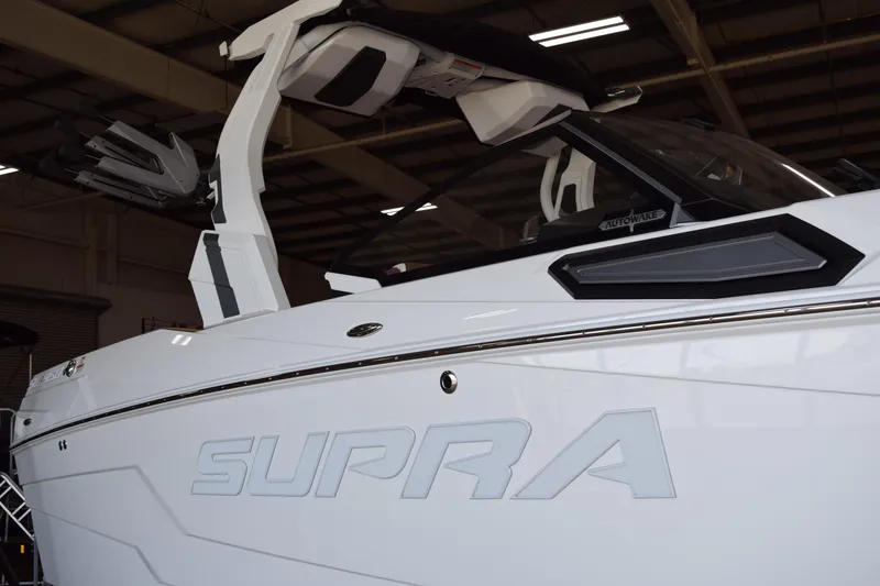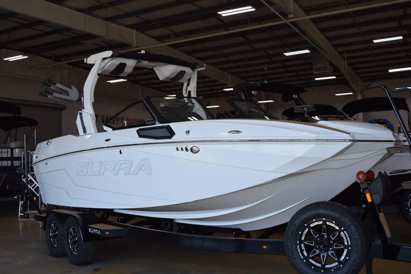 Introducing the stunning 2025 Supra SL, a new addition to the Ski/Wakeboard Boats class, boasting an impressive overall length of 25.58 feet. This vessel features a robust fiberglass hull with a modified vee shape, ensuring exceptional performance on the water. Powered by a formidable 450 hp Indmar Raptor inboard engine, the Supra SL delivers exhilarating speed and agility, perfect for wakeboarding and skiing enthusiasts. Designed for comfort and enjoyment, this boat accommodates up to 17 passengers, making it ideal for gatherings with family and friends. The thoughtful layout enhances the on-water experience, ensuring everyone has a great time. With its sleek design and powerful engine, the Supra SL is not just a boat; it's a gateway to unforgettable adventures on the water. Experience the thrill and luxury of the 2025 Supra SL, where every outing becomes a cherished memory.