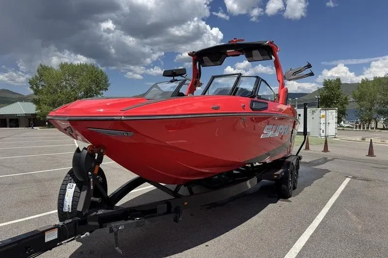 Chilli pepper red Supra SL 575 with Supercharged Raptor engine. Swellsurf system, DSD sound system, chill tech vinyl seats, and more included.