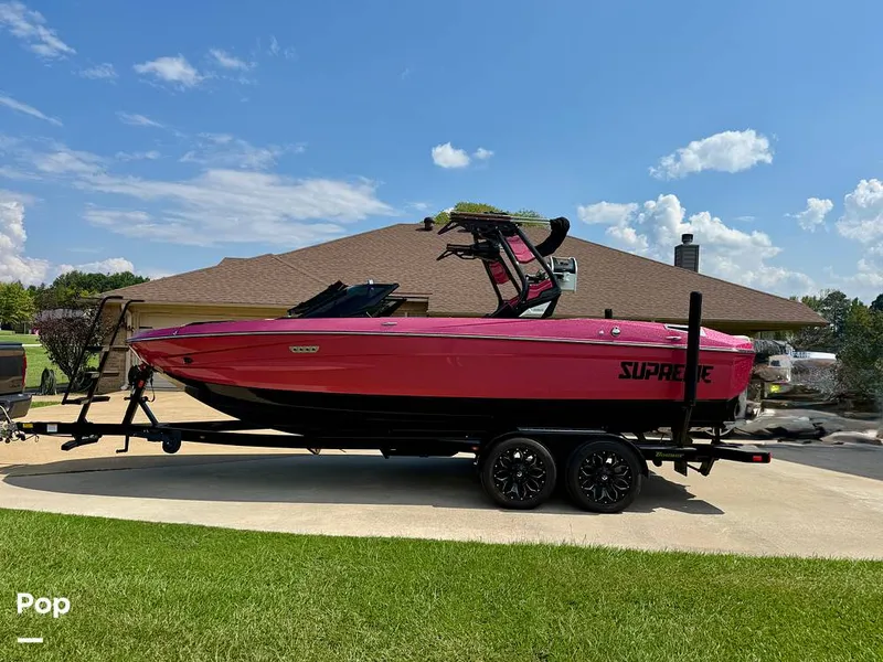 This 2023 Supreme S220 is a 22' ski/wakeboard boat located in Gilmer, Texas.