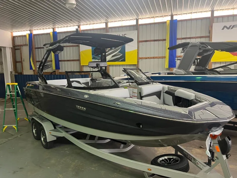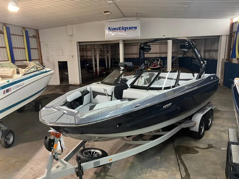 This boat is in stock and on display. Call about off-season incentives on this boat. This boat includes the S220 boat, 6.0l engine, cover, metal flake gel coat, Gator Step flooring, 1 pair of Rev 10 tower speakers, 8" interior speakers, 12" subwoofer, amplifier, driver's stereo with volume knob, swivel board racks, max factory ballast, bimini with surf sleeves, pull up cleats, bow filler cushion, docking lights, heater, silent stinger plate exhaust, pull up ski pylon, underwater lights, walk through wind block, PTM Edge mirror upgrade, dual batteries, tandem axle trailer with spare.