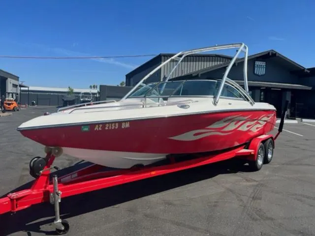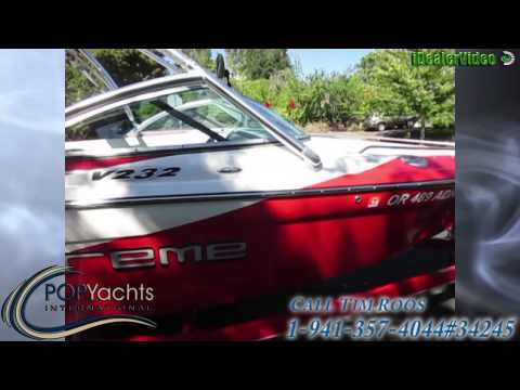 This V232 has been well cared for. Optioned with a stereo, Ballast system, Perfect pass, tower, tandem axle trailer, black scorpion motor with 408 hours.