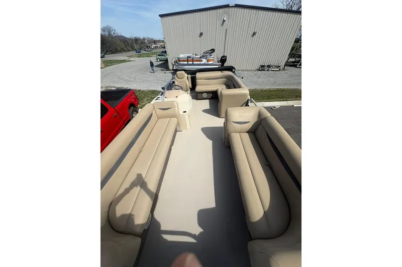 Great price on used tritoon. Interior nice. Exterior has some dents and scratches.