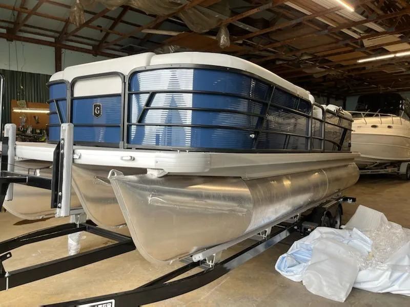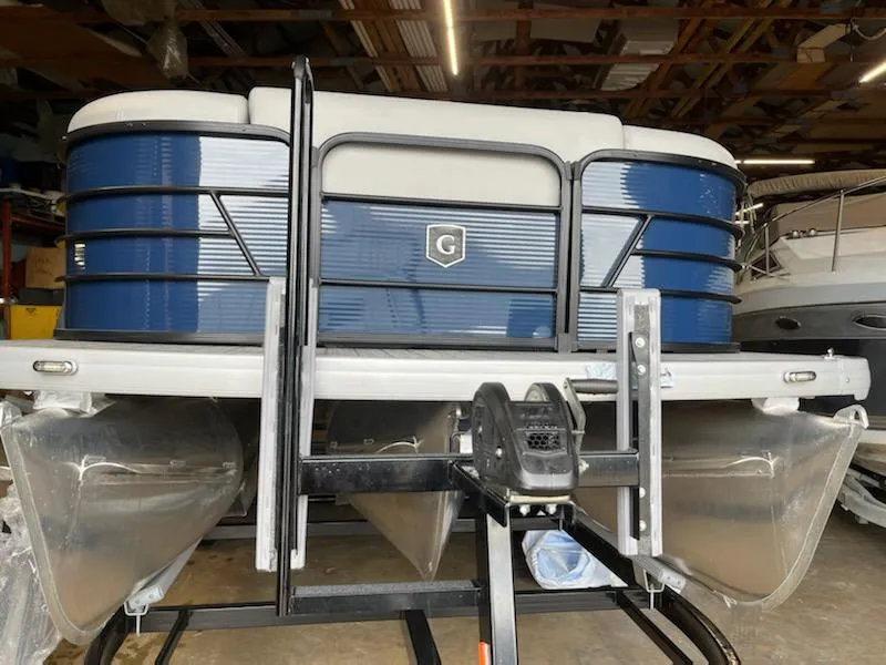 Split Bench layout finished in metallic navy blue with black rails and tri-tone grey interior with luxe lunar quilted accents and wicker wrapped seat bases. Options include a bow filler seat, harbor grey flooring, upgraded Fusion Apollo Silver stereo with lighted chrome speakers, wireless phone charger / holder, Hook 5 color fish finder, chartplotter and GPS, four removable arm rest / cup holders, ski tow bar, and large upgraded table. 27" GTP performance triple tube package with lifting strakes and hydraulic steering and a Mercury 150 HP four stroke engine. Awesome package!