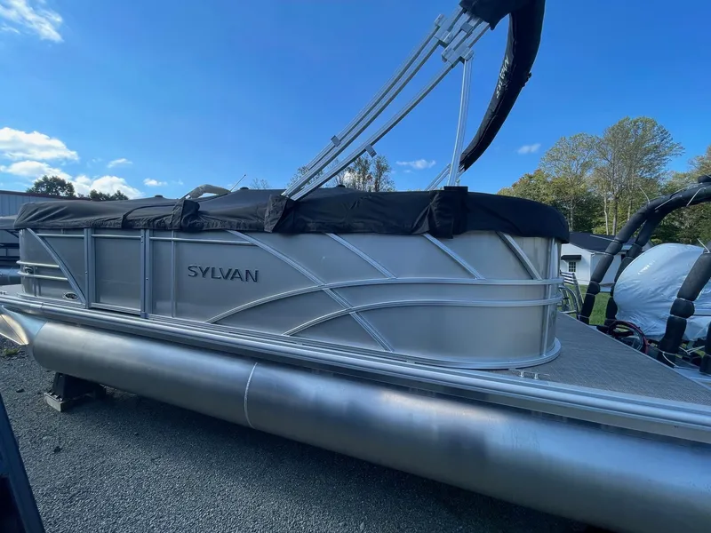 2025 SYLVAN 820 LZ Powered by a Yamaha F70LA Sea Weave Brown Floor, Black Bimini top, Wet Sounds MC5 Radio with 4 speakers, 4 Cleats, 4 step SS Low Profile ladder, Table, Playpen cover. The Sylvan Mirage 820 LZ redefines comfort and spaciousness on the water, offering wrap-around front and rear couches to maximize seating space within the cockpit. Whether it's a leisurely cruise or a social gathering, this pontoon provides the perfect setting for relaxation and enjoyment. Additionally, the full fiberglass console ensures convenient storage for all your essentials, keeping the cockpit clutter-free and organized. Completing the package is the bimini top, providing essential shade on sunny days, allowing passengers to stay comfortable while soaking up the sun. With its thoughtful design and abundance of seating, the Sylvan Mirage 820 LZ promises unforgettable moments on the water, whether it's a peaceful day of cruising or a lively gathering with friends and family.