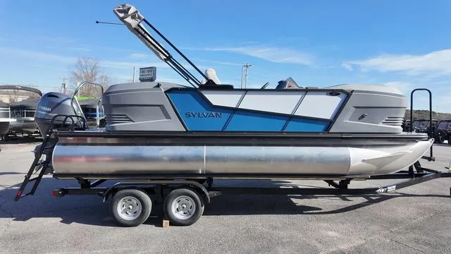 The Sylvan A-Series 820 LZ DH is a stunning pontoon boat designed for both comfort and style. Featuring side-by-side dual helm chairs, it offers a perfect blend of luxury and functionality for the captain and co-captain. The full sea weave flooring enhances durability while providing a sleek, modern aesthetic. Equipped with robust 23" diameter tubes and rotocast molded corners, the design seamlessly integrates into the side panels, creating a streamlined appearance that stands out on the water. Additionally, the included bimini top ensures sun protection, making it an ideal choice for leisurely days out on the lake.