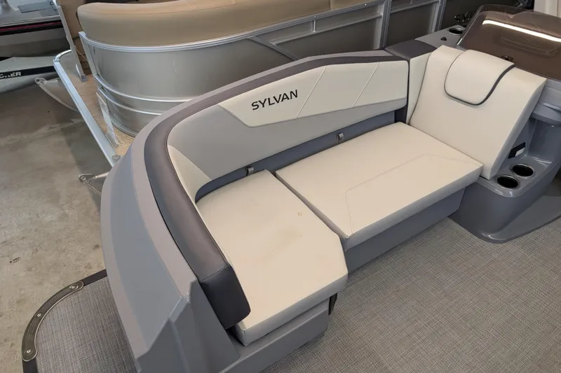 The Sylvan A-Series 22 LZ DH Sport is a stunning pontoon boat designed for both comfort and style. Featuring side-by-side dual helm chairs, it offers a perfect blend of luxury and functionality for the captain and co-captain. The full sea weave flooring enhances durability while providing a sleek, modern aesthetic. Equipped with robust 23" diameter tubes and Sylvan's innovative PTS tube system, along with rotocast molded corners that seamlessly integrate into the side panels, this boat boasts a streamlined appearance that stands out on the water. Additionally, the included bimini top ensures sun protection, making it an ideal choice for leisurely days out on the lake