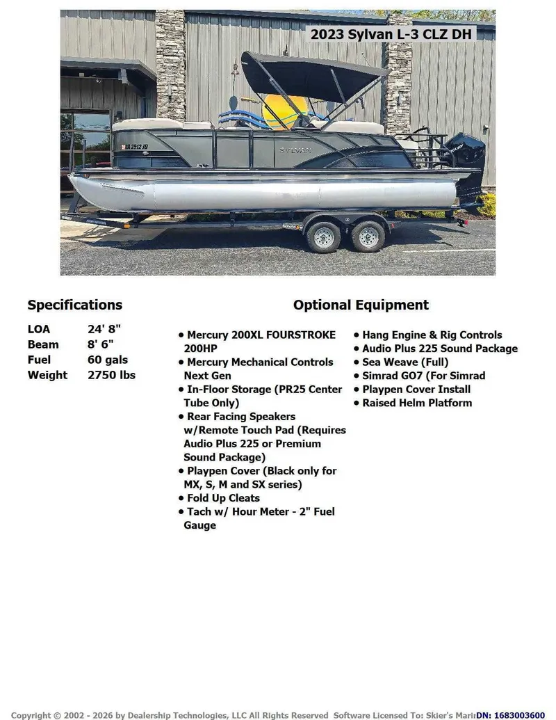 Contact Skier's Marine Atlanta about 2023 Sylvan L-3 CLZ DH