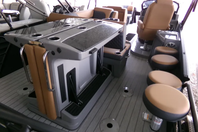 This 2026 Sylvan Bar Boat is the epitome of luxury. It features a bar that folds out into a lounger when you need a rest and extremely comfortable seating.