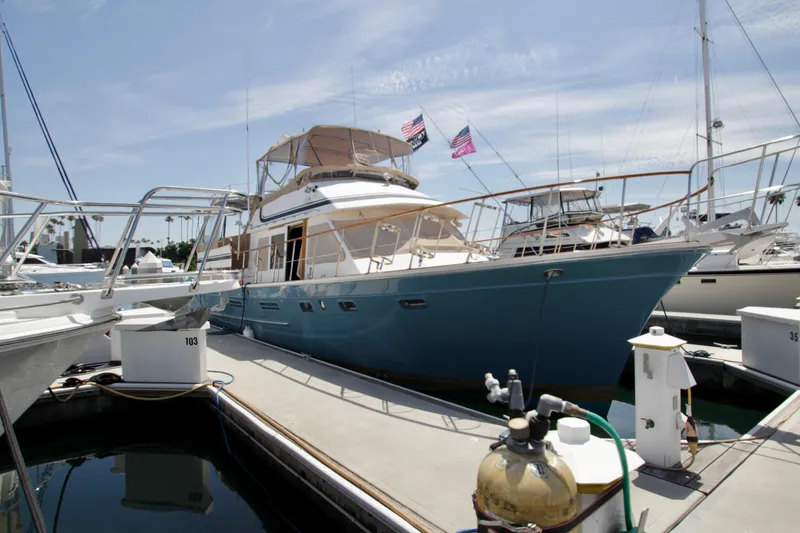 This 51' Symbol Motor Yacht "Bad Latitude" is a rare find, combining timeless design with all the comforts of a contemporary cruiser. This stunning example of a popular motor yacht has benefited from thousands of dollars of meticulous work done by knowledgeable owners and is now for sale. Ideal for cruising, entertaining, or as a luxurious liveaboard, this vessel offers everything you need for memorable voyages.Her twin Caterpillar 3208TA powerplants have been regularly maintained and her Northern Lights 8.5kW generator provides all the necessary power while off the dock. Added bow thruster and NIAD stabilizers only add to the ease of operation and use. Additionally She features, tender with hoist, a new refrigerator, salon chairs, vacu-flush heads, and a full rear enclosure, making her vast living spaces comfortable both above and below decks. Newly done teak varnish and aft deck enclosure.