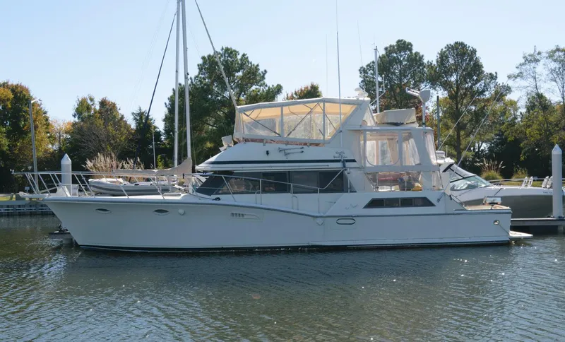 With a big roomy interior, this boat has a 2 stateroom, 2 head layout that will make a great liveboard or coastal cruising yacht. Cat 3208 Diesels with great access and room to work. The cockpit can easily accommodate fishing or diving pursuits and the flybridge has a great enclosure and loads of seating. Of course it needs some TLC but is priced accordingly.