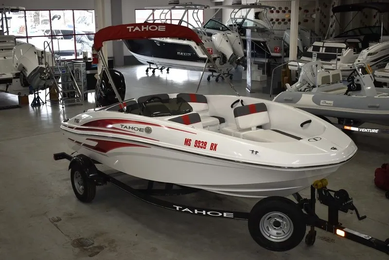 You are viewing a recently traded in 2024 Tahoe T16 runabout bowrider boat, motor and trailer pkg. This 16ft 5in Tahoe is powered with maximum HP for this boat, a 75hp Mercury 4 stroke outboard with only 34 hours on it and transferable warranty good till March 22, 2032. This complete package includes a trailer built specifically for this boat, a black, single axle bunk trailer with spare tire. This one comes nicely equipped with a full trailer/mooring cover, Bimini top w/ boot, Floor ski locker, Two position port side backrest, inlay non-skid flooring, walk thru transom, Aft sunpad. The 2024 Tahoe T16 is know for it's compact size, making it easy to tow and store, while offering features typically found on larger boats. 100% composite construction, designed for watersports and cruising. Boat can be seen at Diamond Marine's indoor showroom, local trades welcome, financing available with storage till ready. Email or call today at 203 466-5384 with any questions and ask for sales. Thank You, Diamond Marine of Connecticut, in business for over 40 years.