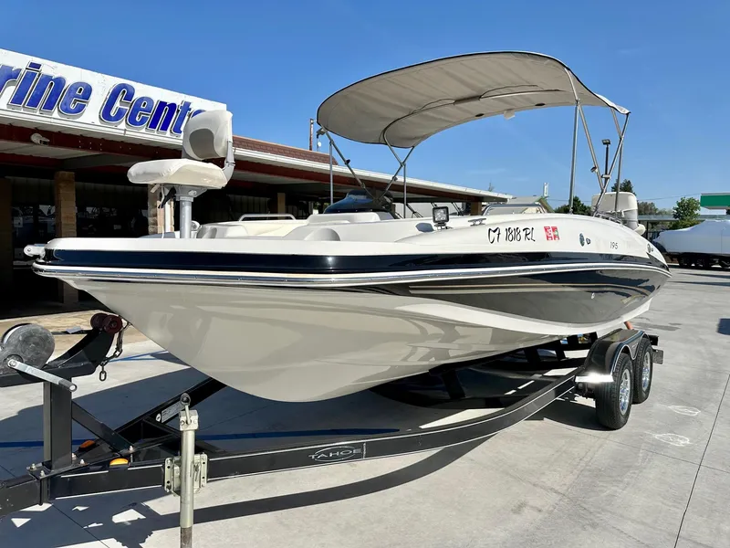 ** THIS BOAT IS PENDING A SALE 7/5/25 **2007 Tracker Tahoe 195 Deckboat in White and Black. Powered with a 4.3 Mercruiser. Only 285 Hours on the motor! Comes as shown with trailer, Bimini Top, Garmin Fish Finder, and lots of seating!* Price shown is Before Tax, DMV and other fees. Call us or stop by 7 days a week for more information at 559-432-2277