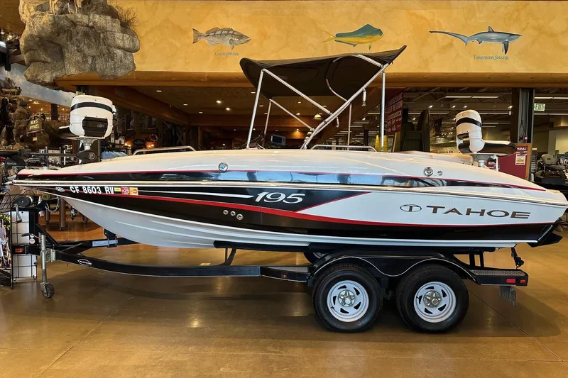 THIS UNIT IS SOLD "AS IS" USED 2013 TAHOE 195 I/O. INCLUDED IN THIS PACKAGE IS A TANDEM AXLE TRAILER W/BRAKES, MOTORGUIDE TROLLING MOTOR, LOWRANCE FISH FINDER, FISNING SEATS, BRANDE NEW BIMINI TOP CANVAS WITH DROP DOWN CHANGING CURTAIN. ENGINE HAS 111 HOURS, NEW WINDSHIELD INSTALLED, NEW CRANKING BATTERY, NEW TROLLING MOTOR BATTERY, FULL TRAILER AXLE SERVICE COMPLETED. REPLACED TRAILER ACTUATOR, FULL ENGINE OIL CHANGE INCLUDING OIL, FILTERS, IMPELLER, SPARK PLUGS, CAP & ROTOR.