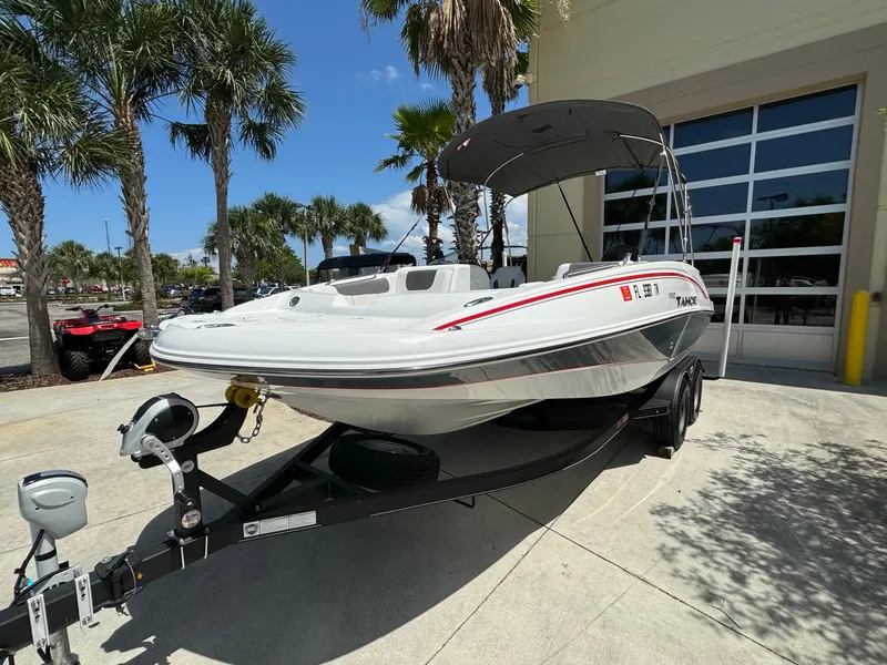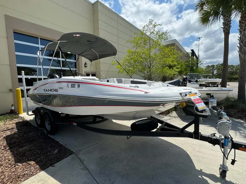 Available now is a 2023 Tahoe 1950 with a Mercury 150hp Fourstroke. The motor has 30.1 hours on it and is priced to sell fast at $44,599.! The boat has structural warranty until 06/2028, Mercury standard warranty until 06/2026 and gold warranty from 06/2026-06/2028. The boat comes with a Garmin 64sv touchscreen installed, tandem axle trailer, electric wheel jack, jensen stereo system, stainless steel prop and a bimini top! Please call us at 772-210-3520 with any questions!
