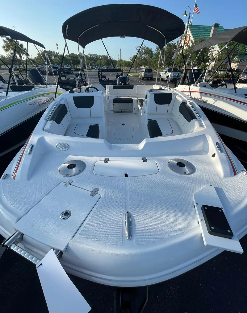 The TAHOE® 1950 deck boat lets you experience summer the right way-on the water with family and friends in bountiful luxury with exhilarating performance.