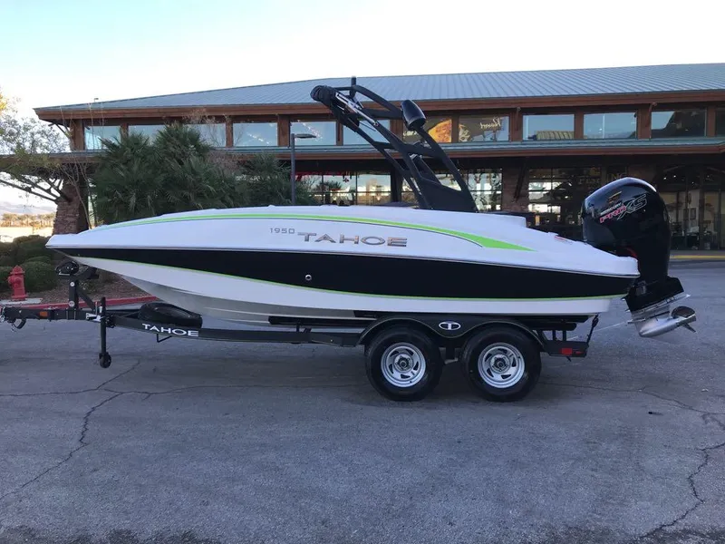 The TAHOE® 1950 deck boat lets you experience summer the right way-on the water with family and friends in bountiful luxury with exhilarating performance. Let your crew spread out on the ample lounges and benches, conveniently stowing all manner of gear throughout. At the helm you'll find simple, reliable switching and gauges that keep you in the know at all times. A 36-qt. removable cooler keep things icy cold but when it's time to fire it up, stout outboard power is a shove of the throttle away.