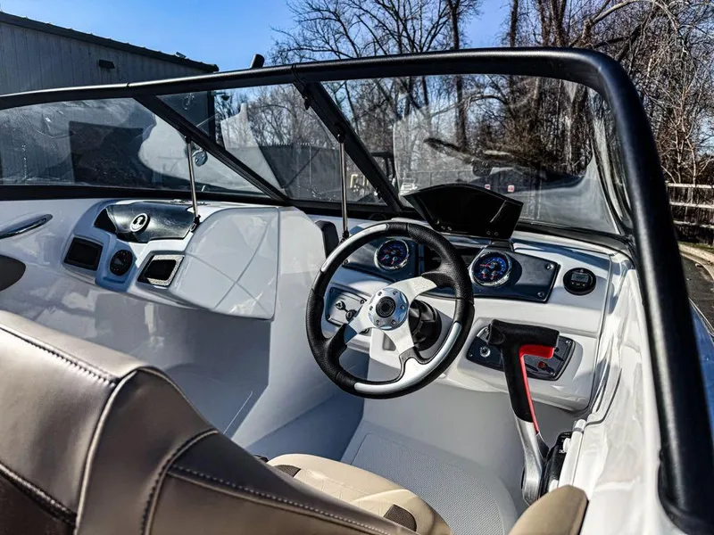 Fish and ski sunny days away in the 2025 TAHOE® 200 S! This performance-designed boat has everything lake adventurers need to explore the waters the way they like. Pilots can take control with the cockpit's hydraulic steering, precision gauges, water-resistant toggle switches, and hidden storage. Go full throttle to experience the POWERGLIDE® hull's HYDROSTEP strakes. Up to 8 passengers can enjoy the ride in this TAHOE's dual front-deck seats, swiveling driver and passenger seats, and rear bench seat. Find your swimming hole and relax on the full-length aft sundeck with cushions that pull away to reveal hidden storage compartments-a feature shared by the other seats.