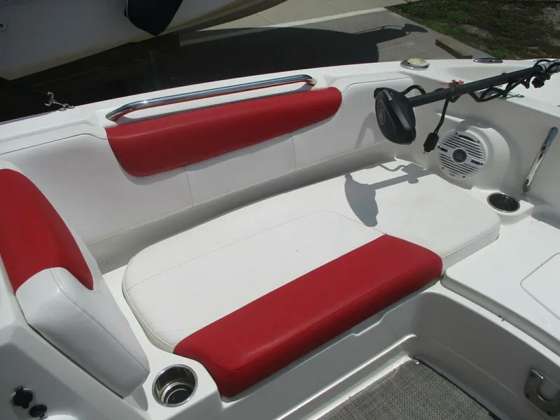 - Aft L-lounge w/molded-in storage, including ski rope holder & removable 36-qt. (34.07 L) cooler