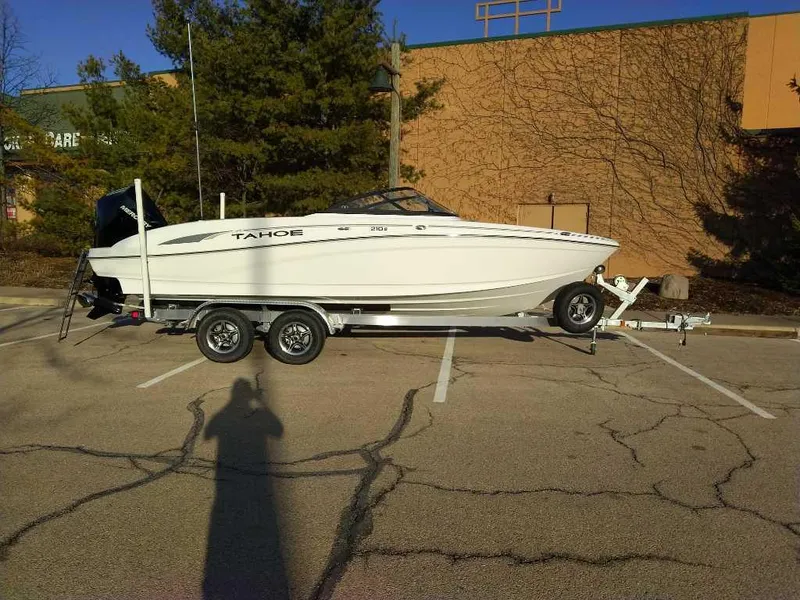 The 2025 TAHOE® 210 S comes standard with a 150hp Mercury® XL Pro XS® FourStroke outboard motor and has a recommended maximum 225hp rating. This model is packaged with a trailer.