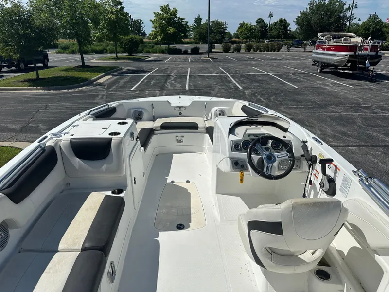 So, tie a line to the ski tow pylon and enjoy up to 225 horses of power. Ease the throttle forward and leave the shoreline in the distance. Sit back and relax with those who matter most on any of the comfortable lounges throughout (the Bimini provides quick shade on hotter days). Or set up the removable table and prepare a picnic at the freshwater refreshment center.