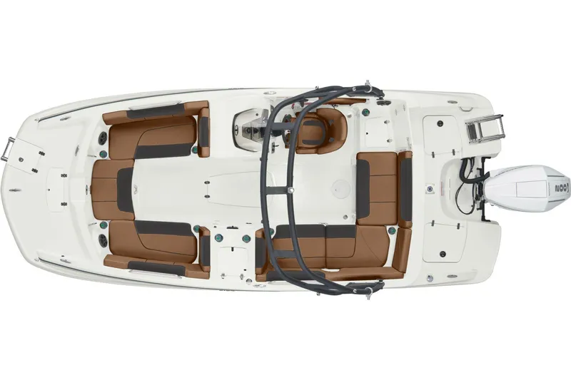For the fishers, there's the 15-gal. aerated livewell with a pull-out sprayer and rod holders. An available fishing package adds a trolling motor, fish finder, and dual fishing seats. Thrill-seekers will love the in-floor wakeboard and ski storage compartment, standard removable ski-tow pylon, and 4-speaker Kicker® stereo with Bluetooth® compatibility. Pull up the bimini top and relax while the kids jump off the swim platform and get back on the