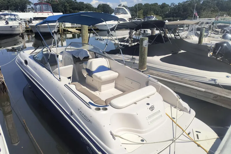 The Tahoe Sun Deck 254 is all the deck boat you could ever ask for. So big you?re swimming in space long before you go for a dip in the water. In fact, the only things you?ll find more of than elbow room are features and amenities. Of course, before long it?s time to go skiing or wakeboarding, or take a spirited cruise across the lake. With Hydro Step strakes, Power Glide Hull.