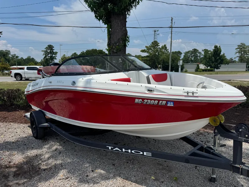 Introducing the 2020 Tahoe 550TS, a stunning dual console boat that perfectly blends style and performance. With an overall length of 19.83 feet, this vessel is crafted from durable fiberglass, ensuring both strength and a smooth ride. Powered by a robust 150 hp Mercury outboard engine, it delivers an exhilarating cruising speed of 30 knots and can reach a maximum hull speed of 40 knots, making it ideal for thrilling adventures on the water. The Tahoe 550TS is designed for versatility, featuring a spacious layout that accommodates various activities, whether you're fishing, cruising, or enjoying time with family and friends. Its thoughtful design ensures comfort and ease of use, enhancing your boating experience. With only 300 hours of use, this boat is in excellent condition, ready to create unforgettable memories on the water. Embrace the excitement of boating with the Tahoe 550TS, where every journey is a new adventure.