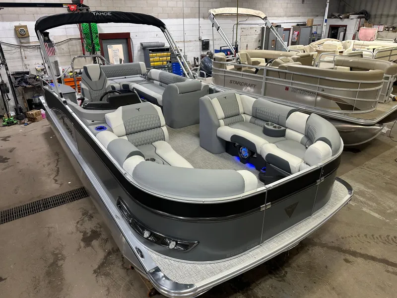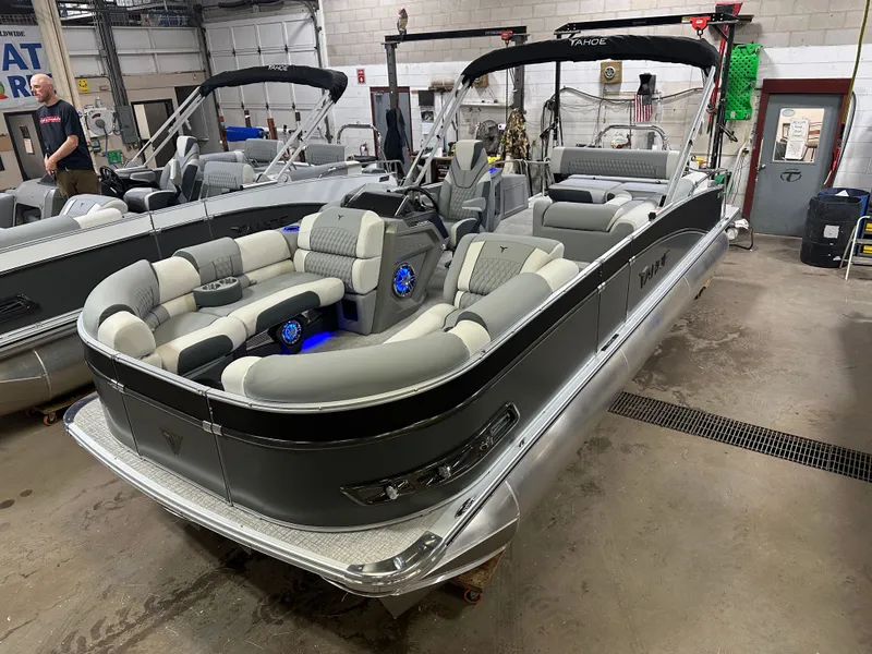 2025 Tahoe Cascade 2385 Cruise Rear Bench Tritoon Pontoon & Honda 4-Stroke EFI. This Two Tone Charcoal Matte/Black Matte Walls Tri-Toon Has Chaise Lounge Bench Seating Up Front With Storage, Huge Wrap Around Chaise Lounge Seating With Storage, High Back Reclining Admiral Captain's Chair, Graphite Interior Package, Rear Facing Swingback Bench Seat w/Chained Aft, Ski Tow Bar, High Performance Sound Package (Fusion Bluetooth Radio w/6 Speakers & Amp, 10" Sub, USB Audio Input & Charge), Simrad NSX 9 Touchscreen, Simrad NSX 7 GPS Depth Finder, Dual USB Charging Ports, Built In 38 Gallon Gas Tank, Greywood Rectangle Table, Multiple Cup Holders, Electric Bimini Top, Cascade Platinum Package (Ultrafine Touch Vinyl Upgrade, Mooring Cover, SST Pull-Up Cleats, DECO Docklights, Blue Ice Package, SST Vent Covers, Platinum Edition Special Badging), Starboard Aft Storage Center w/Garbage Can & Cup Holders, Lillipad Easy Step Ladder, Trash Can Under Chaise Lounge, Charcoal Cladding, New Battery And Prop, Riptide Shadow Vinyl Floor, Polished Corner Caps, Front And Rear Deck, Battery Selector, 2 Portable Cup Holders, Privacy Station, 25" Tubes, LED NAV Lights, Smoked Chrome Logos, Hydraulic Tilt Steering, Lifting Strakes, Aluminum Undersheeting, 4 Fender Holders, Wireless Phone Chargers, Bow USB Charging Port. Rated For 12 People. Honda 115HP 4-Stroke EFI - $59,995 Honda 140HP 4-Stroke EFI - $61,995 Honda 150HP 4-Stroke EFI - $62,995 Honda 200HP 4-Stroke EFI - $66,995 Ask About Honda 250HP Pricing Trailer Is Not Included But Available For Use Or Purchase. Don't Be Fooled With Additional Fees @ Closing, Our Price, Plus Tax & License, Includes Freight, Rigging, Battery, Prop, Ect.... 10 Year Bow To Stern Warranty With Tahoe 5 Year Non-Declining Warranty With Honda Financing Available OAC All Factory Rebates Included In Sale Price Call Boat World @ 763-434-9655 - Stock #7495 For More Information And To See Many More New Pontoons Visit www.boatworldmn.com Tahoe Pontoons are built by Avalon and Tahoe Manufacturing in Alma Michigan