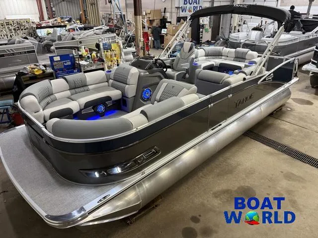 2025 Tahoe Pontoons Cascade 2385 Elite Cruise Tritoon & Honda 4-Stroke, 2025 Tahoe Cascade 2385 Cruise Elite Tri-Toon Pontoon & Honda 4-Stroke EFI. This Luxury Two Tone Platinum Edition 23' Tritoon Cruise Has 2 Chaise Lounge Bench Seating Up Front With Storage, Side Lounge Seating With Storage, Rear Wrap Around Lounge Seating, Riptide Shadow Vinyl Floor, Built-In 38 Gallon Gas Tank, Cascade Platinum Edition (Ultrafine Touch Vinyl Upgrade, LED DECO Docking Lights, Admiral High Back Reclining Chair, Mooring Cover, SST Pull-Up Cleats, Blue Ice Lighting Package, SST Vent Covers, Platinum Edition Special Badging), Graphite Interior Package, Charcoal Cladding, LED Nav Lights, Simrad NSX 9 Touchscreen Gauges, Simrad NSX 7 GPS Navigation System, Ski Tow Bar, Dual USB Charging Ports, Wireless Phone Charger, High Performance Sound Package (Bluetooth Fusion Radio With 6 Speakers, 10" Sub w/Amp, USB Audio Input & Charge), Furniture Series Upgrade, Hydraulic Tilt Steering, Lifting Strakes, Aluminum Undersheeting, Lillipad Easy Step Ladder, Greywood Rectangle Table, Lifetime Aluminum Seat Frames, Electric Bimini Top, 25" Tubes, Manual Dual Battery Selector, Large Smoked Chrome Hi-Flex Logos, Trash Can In Lounge Arm, Polished Corner Caps, New Battery, Privacy Station, 4 Buoy Holders, Movable Cup Holders. Rated For 12 People.