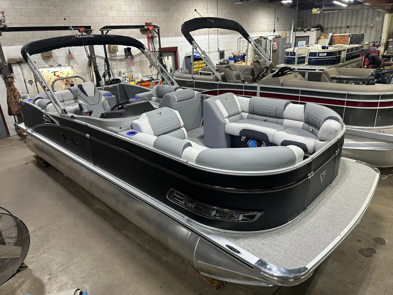 2025 Tahoe Cascade 2385 Cruise Elite Tri-Toon Pontoon & Honda 4-Stroke EFI. This Luxury Matte Black Platinum Edition 23' Tritoon Cruise Has 2 Chaise Lounge Bench Seating Up Front With Storage, Side Lounge Seating With Storage, Rear Wrap Around Lounge Seating, Riptide Shadow Vinyl Floor, Built-In 38 Gallon Gas Tank, Cascade Platinum Edition (Ultrafine Touch Vinyl Upgrade, LED DECO Docking Lights, Admiral High Back Reclining Chair, Mooring Cover, SST Pull-Up Cleats, Blue Ice Lighting Package, SST Vent Covers, Platinum Edition Special Badging), Graphite Interior Package, Charcoal Cladding, LED Nav Lights, Simrad NSX 9 Touchscreen Gauges, Simrad NSX 7 GPS Navigation System, Ski Tow Bar, Dual USB Charging Ports, Wireless Phone Charger, High Performance Sound Package (Bluetooth Fusion Radio With 6 Speakers, 10" Sub w/Amp, USB Audio Input & Charge), Furniture Series Upgrade, Hydraulic Tilt Steering, Lifting Strakes, Aluminum Undersheeting, Lillipad Easy Step Ladder, Greywood Rectangle Table, Lifetime Aluminum Seat Frames, Electric Bimini Top, 25" Tubes, Manual Dual Battery Selector, Large Smoked Chrome Hi-Flex Logos, Trash Can In Lounge Arm, Polished Corner Caps, New Battery, Privacy Station, 4 Buoy Holders, Movable Cup Holders. Rated For 12 People. Honda 115HP 4-Stroke EFI - $59,995Honda 140HP 4-Stroke EFI - $61,995Honda 150HP 4-Stroke EFI - $62,995Honda 200HP 4-Stroke EFI - $66,995Ask About 250HP Pricing Trailer Not Included But Available For Use Or Purchase 5 Year Non Declining Warranty With Honda 10 Year Bow To Stern Warranty With Tahoe Don't Be Fooled With Additional Fees @ Closing, Our Price, Plus Tax & License, Includes Freight, Rigging, Battery, Prop, Etc.... Financing Available OAC Call Boat World @ 763-434-9655 - Stock #7484 For More Information And To See Many More New Pontoons Visit www.boatworldmn.com All Factory Rebates On Pontoon & Motor Are Included Tahoe Pontoons are built by Avalon and Tahoe Manufacturing in Alma Michigan