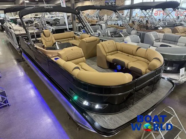 2025 Tahoe Pontoons Cascade 2385 Swingback (VRB) Tritoon & Honda 4-Str, 2025 Tahoe Cascade 2385 Versatile Rear Bench (VRB) Tri-toon Pontoon Powered By Honda. This 23' Platinum Edition Tritoon Has Front Lounge Seating With Storage, Upgraded Reclining High Back Admiral's Chair, Versatile Rear Bench Seating With Storage, Gated Aft, Furniture Series Upgrade, Upgrade Dirftwood Vinyl Flooring, Cognac Interior Package, Blackout Package, Cascade Platinum Edition (DECO LED Docklight Lights/NAV Lights, Ultra Fine Vinyl, Mooring Cover, Stainless Steel Pull Up Cleats, Blue Ice Package, Vent Covers), Exterior Tube Lights, Simrad NSX 9 Touchscreen Gauges, Simrad 7 GPS Depth Finder, Electric Bimini Top, New Battery, Side Storage Behind Captain's Chair, Built-In 38 Gallon Gas Tank, Hydraulic Steering, 25" Tubes, Multiple Cup Holders, 2 Portable Cup Holders, High Performance Sound Package (Fusion Bluetooth Radio w/6 Lighted Speakers, 10" Sub, AMP, USB Audio Input & Charge), Lillipad Easy Step Ladder, Front And Rear Deck, New Battery, Lifting Strakes, Aluminum Undersheeting, Ski Tow Bar, Brushed Bronze Cladding Inserts, Polished Corner Caps, Wireless Phone Charger, Manual Battery Selector, 4 Fender Holders, Large Smoked Chrome Hi-Flex Logos, Privacy Station, Trash Can, Greywood Rectangle Table. Rated For 12 People.